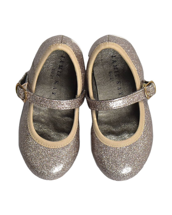 Add a touch of sparkle to your toddler's wardrobe with these elegant EU21 glitter flats from Jamie Kay, perfect for all seasons. These preloved designer shoes are a sustainable choice for your child's growing fashion needs.